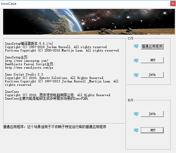 该工具是InnoSetup工具的升级定制版,内置5种常用场景: