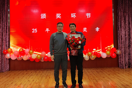 感谢廖总为大家颁发十年、十五年、二十年、二十五年红宝石纪念奖章。