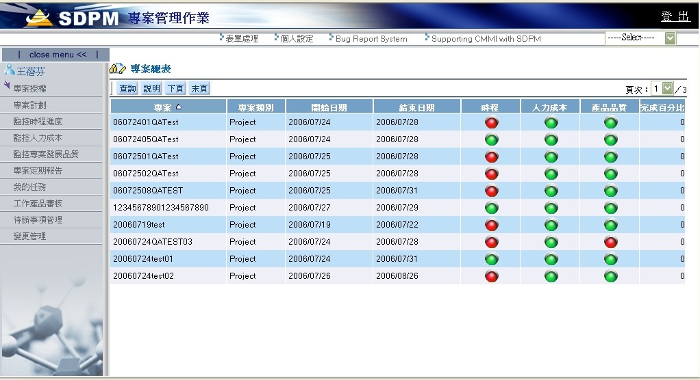 该项目是西安凌安电脑有限公司开发的一套辅助CMMI软件开发流程管理系统。本系统可分为组织基本设定、项目管理、工时管理及问题追踪与管理四大模块,从中收集及汇总出项目时程、人力成本及缺失等不同角度所剖析出的量化报表,以提供从项目成员、项目经理至高阶经理人员作为管理的基础,达到如下效益: